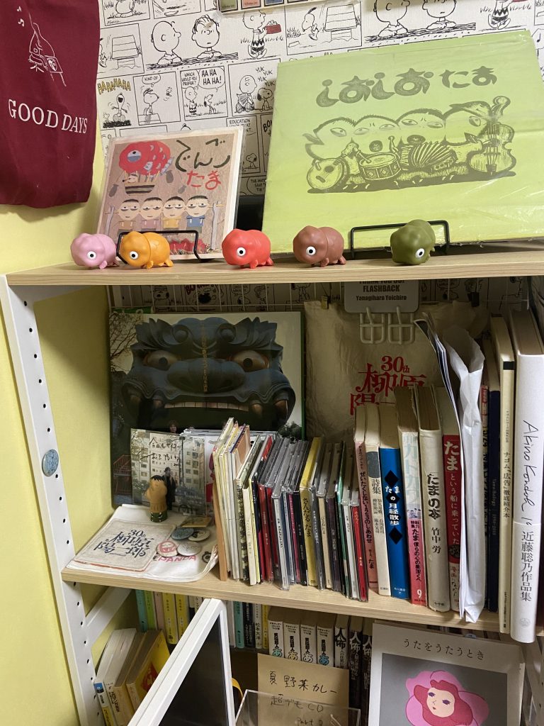 古山:で、小学生でたまに出会って、同級生が嵐を聴いてるなかで、私は「たま帳」って自由帳を作って、たまをイメージしたイラストを書いたりしておりました(笑)。それからずっとファンで、「地球レコード」からリリースされてる、いまも売ってるたまの音源は買い集めて、廃盤のCDや本は神保町とか中野ブロードウェイで収集して。家の本棚にはそういうものを集めた「たまのコーナー」を作ってます。そこから繋がって原マスミさん、友部正人さん、さねよしいさこさんとかも聴き始めて。他にもゆらゆら帝国、マキシマム ザ ホルモン、ヴィジュアル系、アイドル……本当に色々聴きましたね。