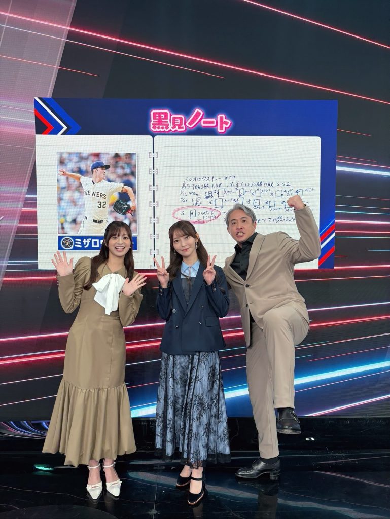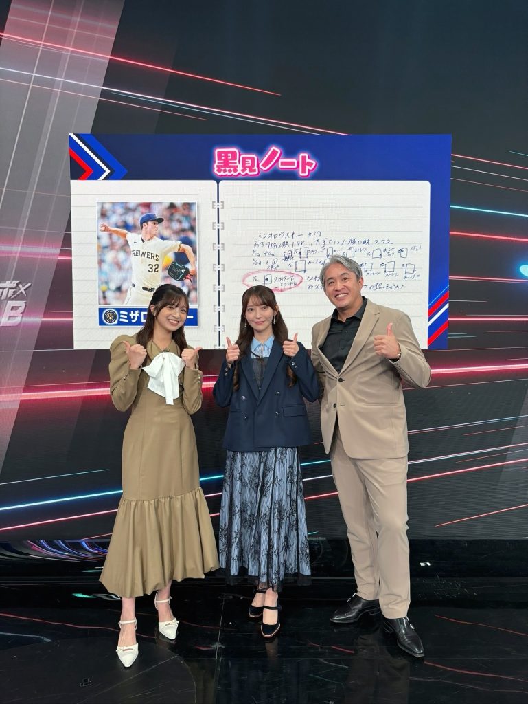 黒見は公式インスタグラムで、「昨晩、NHK BS『ワースポ×MLB』出演させていただきました」「熱戦続くポストシーズン ぜひいっしょに応援 もりあがりましょう~」とつづり、番組のオフショットを公開。黒見と番組キャスターの菊池柚花アナウンサー、元プロ野球選手で野球解説者の五十嵐亮太氏によるスリーショットが投稿されており、「五十嵐亮太さん・菊池柚花さん 本当にありがとうございました」と番組出演の感謝を伝えている。