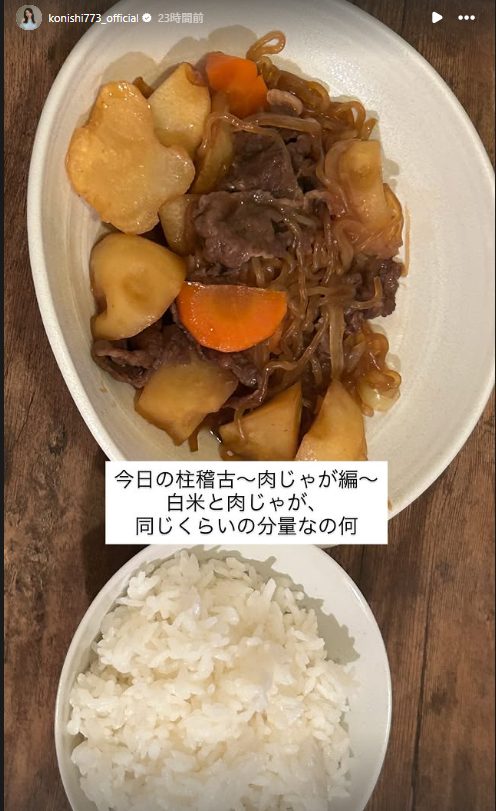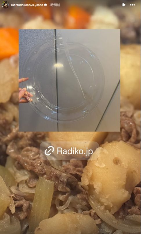 フリートークで松田が語ったのは、局入り直前に起きた悲劇。ライブに向けて絶賛リハーサル中の松田は、後輩の小西夏菜実の公式インスタグラムで「今日の柱稽古~肉じゃが編~ 白米と肉じゃが、同じくらいの分量なの何」という投稿を発見。今年の夏から自炊にハマっているという小西は、定期的にインスタグラムで手料理を投稿しており、メンバーからは様々な料理に挑戦する姿を見て、同時期に劇場版が公開されたアニメ『鬼滅の刃』から「自炊柱」と呼ばれるように。その後の小西のインスタでは、「柱稽古中」「自炊の呼吸壱ノ型『ナスのヘタ切り』」といった、茶目っ気たっぷりの投稿が数多く見られた。そんな後輩に刺激を受けた松田は、リハーサルとラジオの合間に、自宅で肉じゃがを作ることを決意。スーパーで材料を調達し、いざ進めやキッチン!