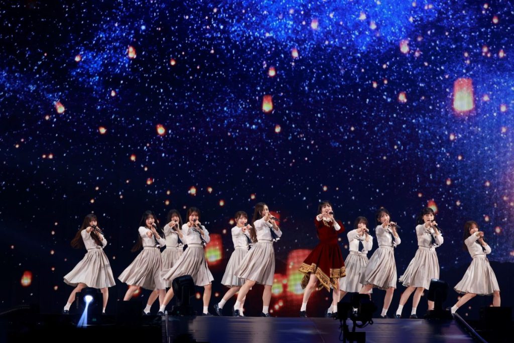 本編ラストに披露されたのは、久保がセンターに立つ3期生楽曲『僕が手を叩く方へ』。オーデイション合格時から近年までの思い出の映像を背に、メンバーが一丸となって温かな歌声を届けると、クラップで会場がひとつになっていく。最後に全員がギュッとくっついたところで、約2時間にわたるライブ本編は幕を下ろした。