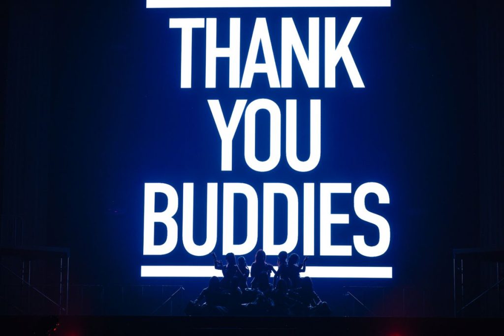 MCでの和やかな空気も小島センターによる『僕は僕を好きになれない』が始まると、彼女の真剣な表情と全身から醸し出される気迫で一変。中盤では情熱的で激しい長尺ソロダンスパートも用意され、ライブがクライマックスを迎えようとしいていることを窺わせる。そして、大沼の「どっちが先にぶっ倒れるか、勝負だ!」という煽りから『もう一曲 欲しいのかい?』に突入すると、メンバーのギアも数段上がり、アグレッシヴな歌とダンスでBuddiesを圧倒。これに応えるように、客席のBuddiesも全力のクラップで場を盛り上げていく。ブレイクパートでは大沼が「足りねえよ、勝つ気あんの?」と挑発する場面もあり、ライブは最高潮へと近づいていった。