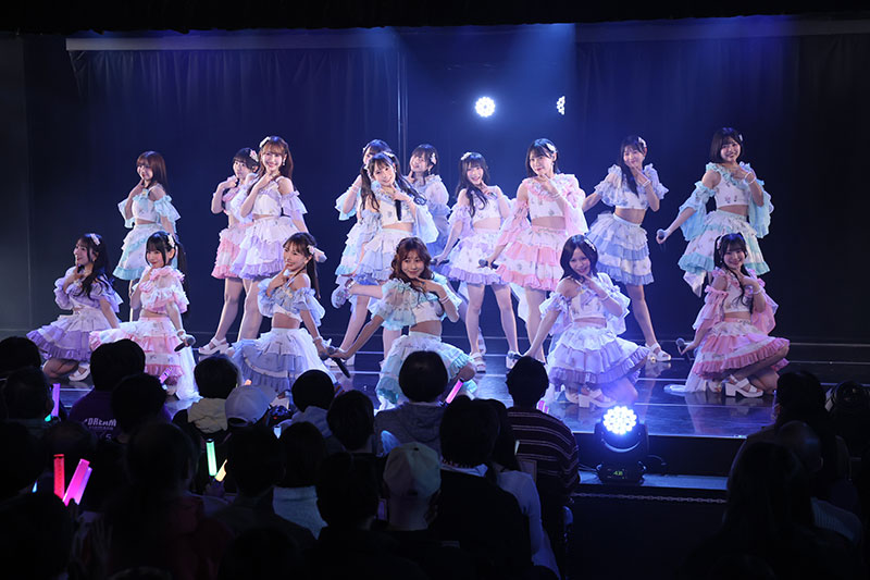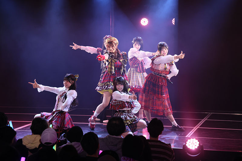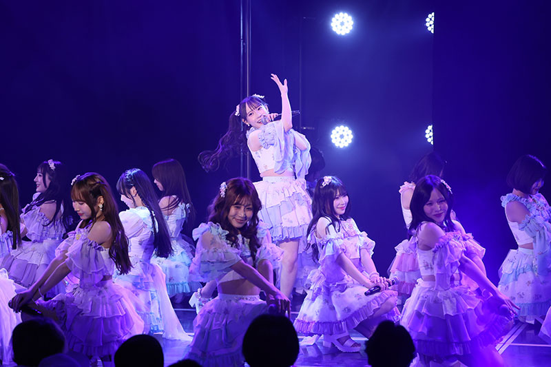 そして劇場盤のカップリング曲はSHOWROOMでの投票で選ばれた7人のユニットSKE48初恋の瞬間による「君だけがターゲット」。赤と黄色のタータンチェックの衣装に身を包み、ポーズをキメて自己紹介。センターの原優寧は「今日は休演になってしまった近藤海琴ちゃんの思いも背負って、気持ちは7人で全力で踊ります」と宣言。繰り返す歌詞がキャッチーな楽曲で、初披露なのに客席からはコールが送られ、「すごくうれしかったです!」と笑顔を見せた。
